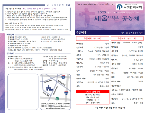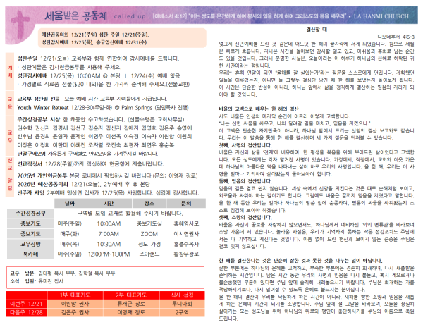 20251221 주보 페이지 정보 작성자 나성한미교회 댓글 0건 조회 71회 작성일 25-12-20 18:06 목록 본문 20251221 주보 이전글20251228 주보 25.12.27 다음글20251214 주보 25.12.12 댓글 0 댓글목록 등록된 댓글이 없습니다. 목록