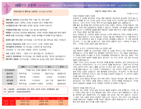 20251019 주보 페이지 정보 작성자 나성한미교회 댓글 0건 조회 2회 작성일 25-10-19 08:33 목록 본문 20251019 주보 다음글20251012 주보 25.10.11 댓글 0 댓글목록 등록된 댓글이 없습니다. 목록