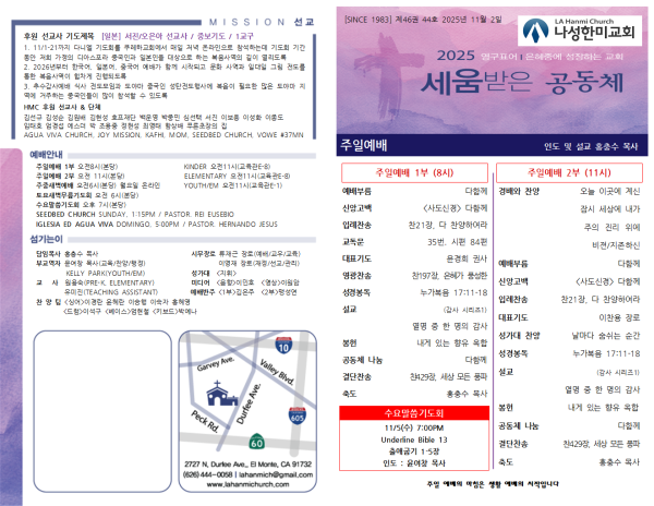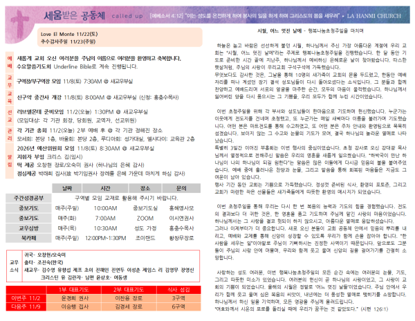 20251102 주보 페이지 정보 작성자 나성한미교회 댓글 0건 조회 19회 작성일 25-11-04 09:41 목록 본문 20251102 주보 이전글20251109 주보 25.11.08 다음글20251026 주보 25.10.29 댓글 0 댓글목록 등록된 댓글이 없습니다. 목록