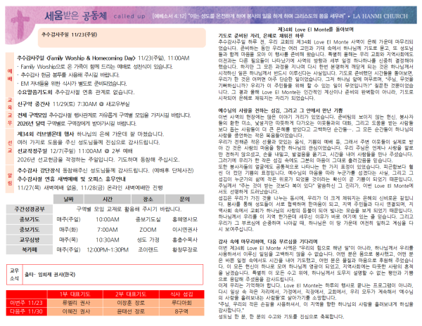 20251123 주보 페이지 정보 작성자 나성한미교회 댓글 0건 조회 90회 작성일 25-11-21 16:48 목록 본문 20251123 주보 이전글20251130 주보 25.11.29 다음글20251116 주보 25.11.14 댓글 0 댓글목록 등록된 댓글이 없습니다. 목록