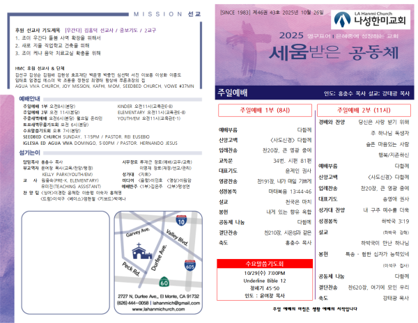 20251026 주보 페이지 정보 작성자 나성한미교회 댓글 0건 조회 31회 작성일 25-10-29 08:29 목록 본문 20251026 주보 다음글20251019 주보 25.10.19 댓글 0 댓글목록 등록된 댓글이 없습니다. 목록